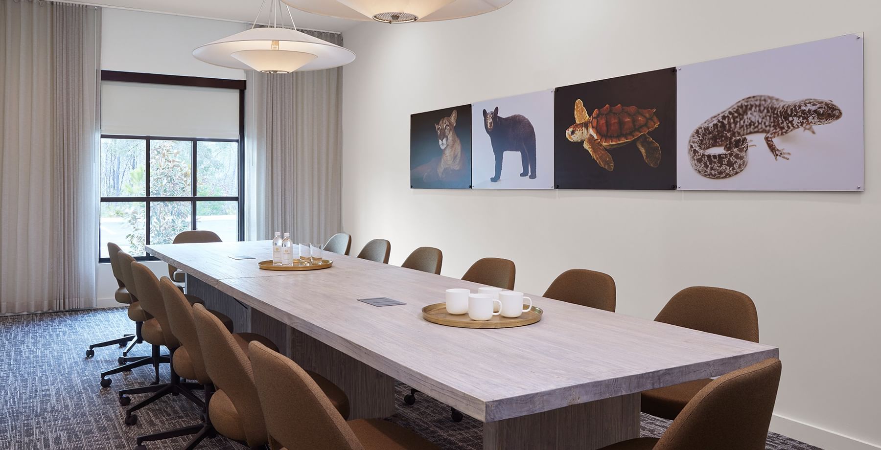 Our 300-square-foot Boardroom, equipped with a Smart TV and video conferencing, accommodates up to 14 people for business meetings, workshops, or intimate gatherings. Our flexible room blocks of 10 or more rooms cater to any occasion, be it corporate events, family reunions, or special gatherings. Submit a Request for Proposal to learn more about hosting your event at The Lodge 30A.